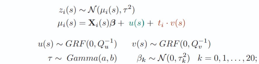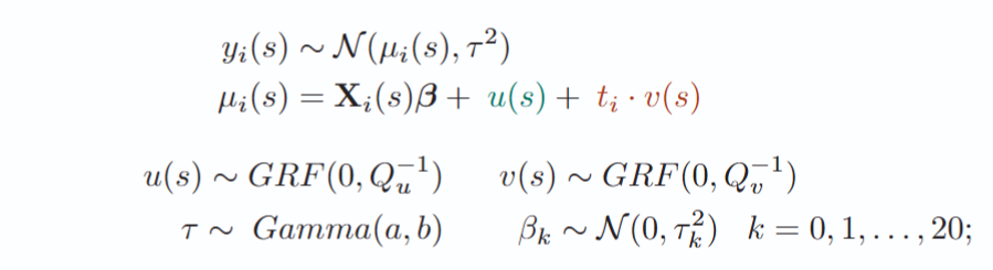 - \( t_i \cdot v(s) \) = spatially varying linear effect of time (long-term